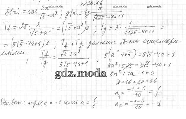 ОТВЕТ на задание № 20.16 Учебник по Алгебре 10 класс Мерзляк Алгоритм успеха Углубленный уровень