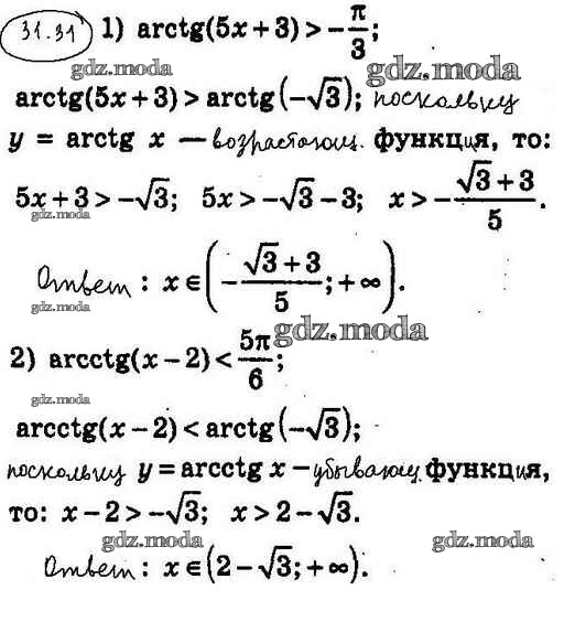 ОТВЕТ на задание № 31.31 Учебник по Алгебре 10 класс Мерзляк Алгоритм успеха Углубленный уровень
