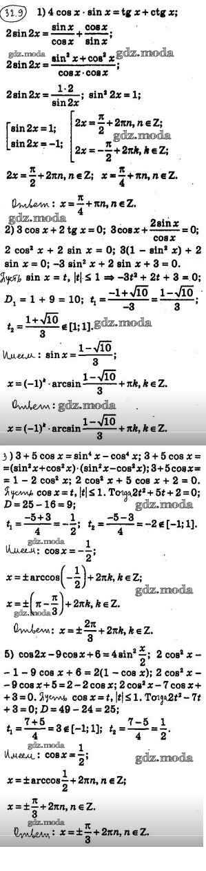 ОТВЕТ на задание № 32.9 Учебник по Алгебре 10 класс Мерзляк Алгоритм успеха Углубленный уровень