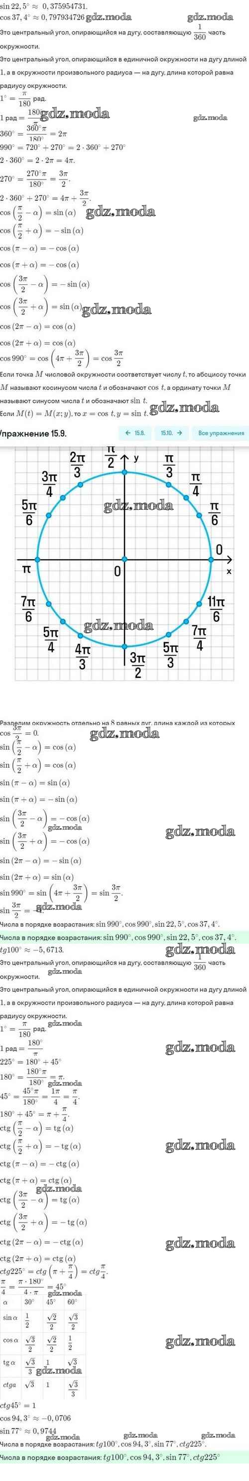 ГДЗ решение к заданию № 15.9 Алгебра и начала математического анализа 10 класс задачник Мордкович А.Г. Мнемозина 2017 Базовый и углубленный уровень ФГОС бесплатно на гдз.мода!