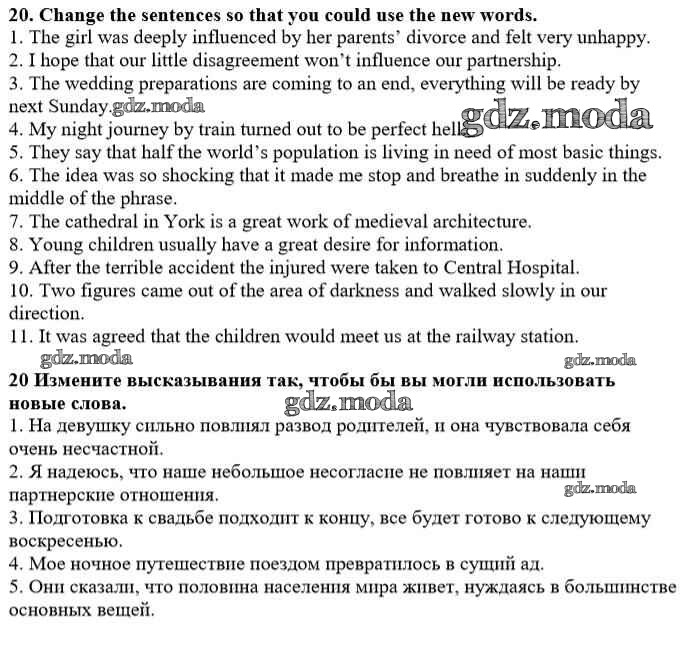 ГДЗ решение к заданию № 20 Английский язык 10 класс Углубленный уровень Афанасьева О.В. Просвещение 2014 Углубленный уровень ФГОС бесплатно на гдз.мода!