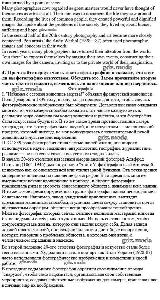 ГДЗ решение к заданию № 47 Английский язык 10 класс Углубленный уровень Афанасьева О.В. Просвещение 2014 Углубленный уровень ФГОС бесплатно на гдз.мода!
