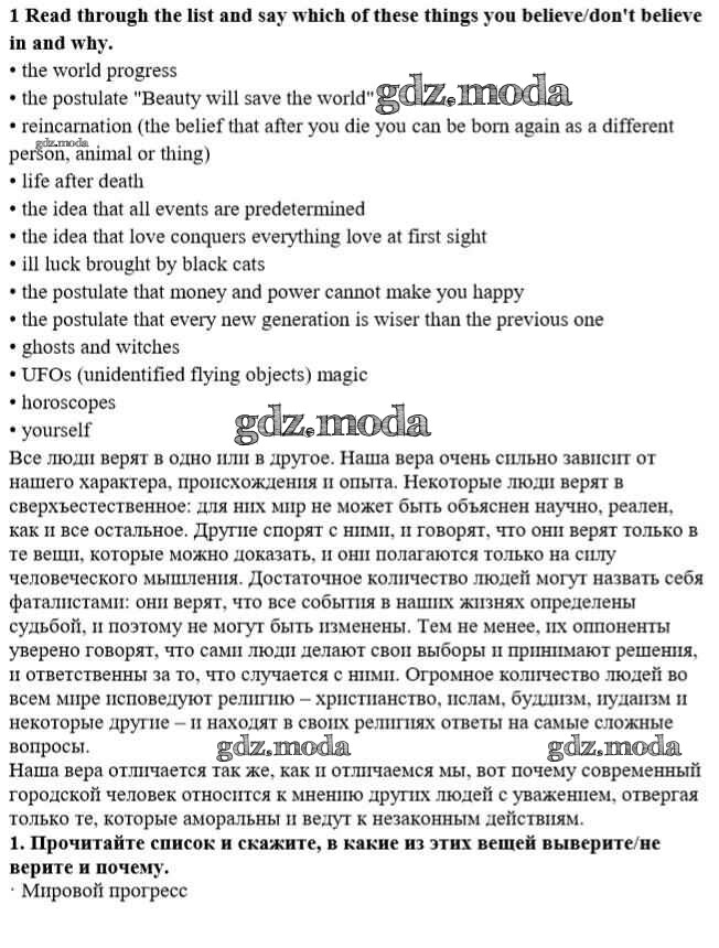 ГДЗ решение к заданию № 1 Английский язык 10 класс Углубленный уровень Афанасьева О.В. Просвещение 2014 Углубленный уровень ФГОС бесплатно на гдз.мода!