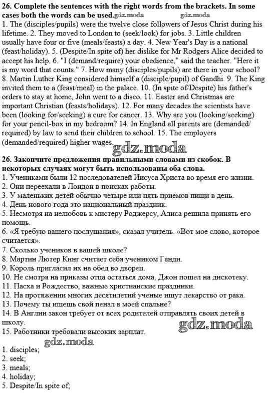 ГДЗ решение к заданию № 26 Английский язык 10 класс Углубленный уровень Афанасьева О.В. Просвещение 2014 Углубленный уровень ФГОС бесплатно на гдз.мода!