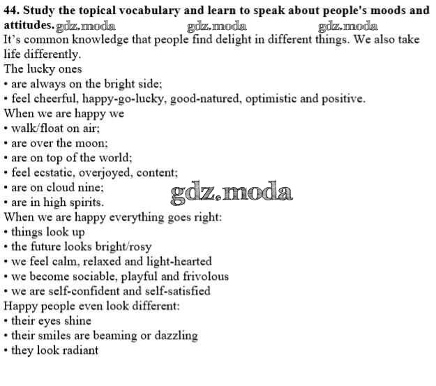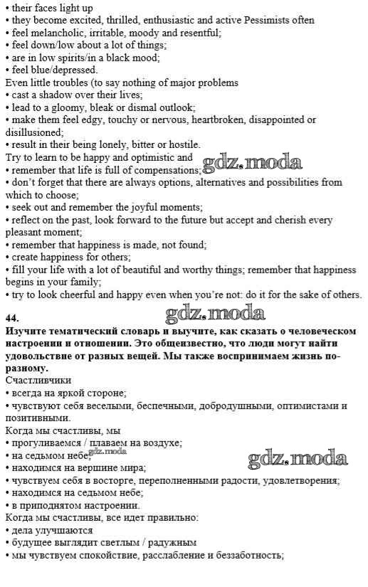 ГДЗ решение к заданию № 44 Английский язык 10 класс Углубленный уровень Афанасьева О.В. Просвещение 2014 Углубленный уровень ФГОС бесплатно на гдз.мода!