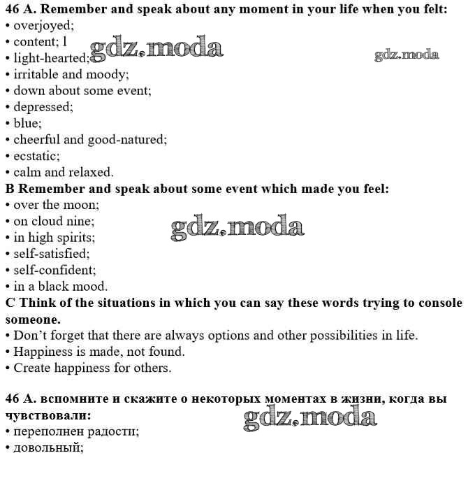 ГДЗ решение к заданию № 46 Английский язык 10 класс Углубленный уровень Афанасьева О.В. Просвещение 2014 Углубленный уровень ФГОС бесплатно на гдз.мода!