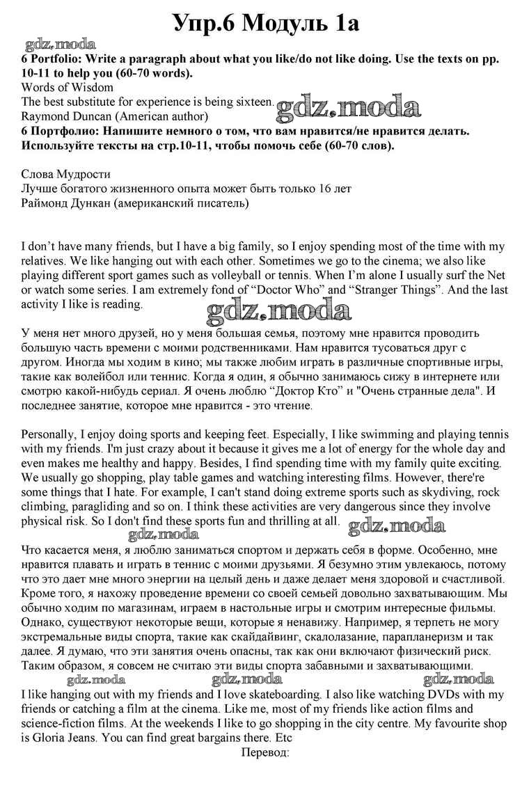 ОТВЕТ на задание № 6 Учебник по Английскому языку 10 класс Афанасьева Spotlight