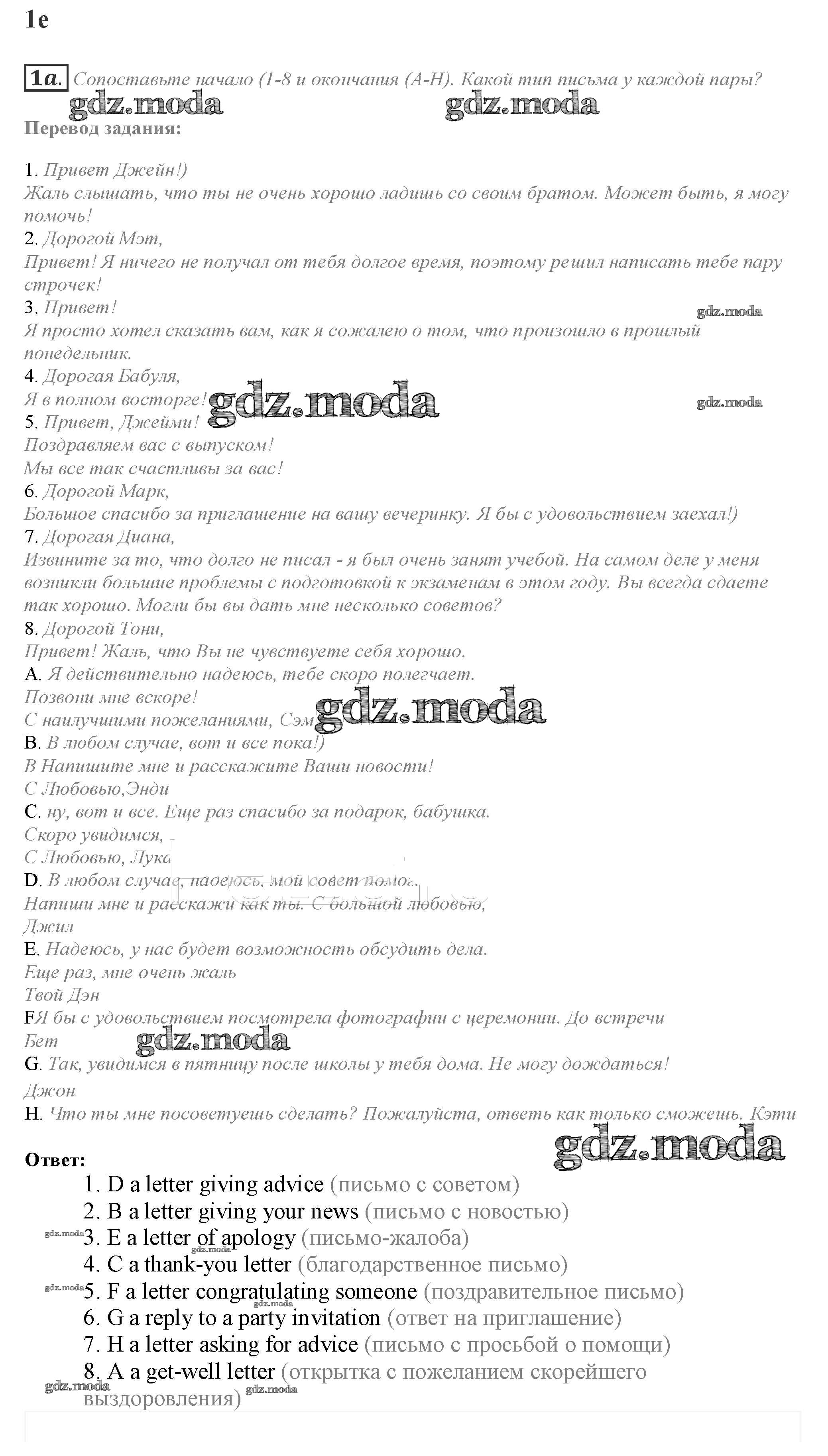 ОТВЕТ на задание № 1a Учебник по Английскому языку 10 класс Афанасьева Spotlight