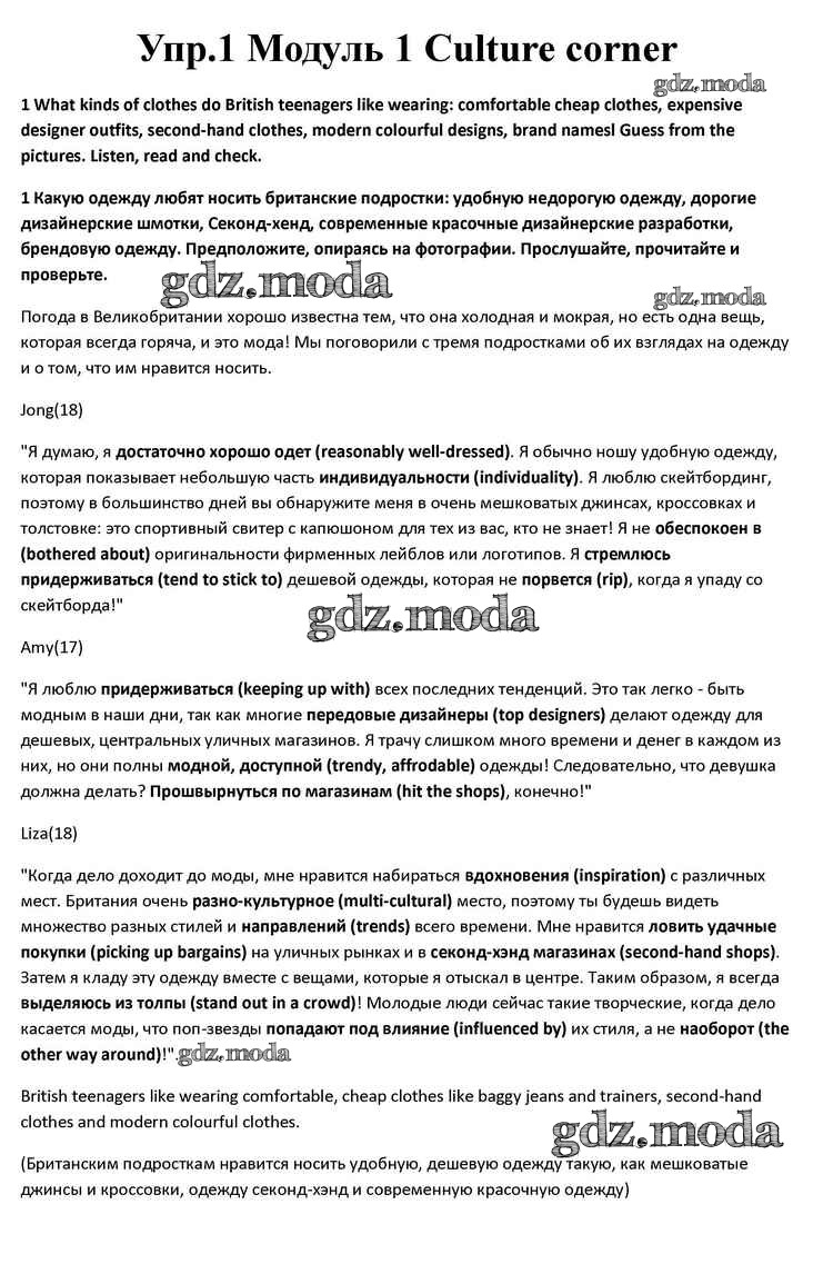 ОТВЕТ на задание № 1 Учебник по Английскому языку 10 класс Афанасьева Spotlight