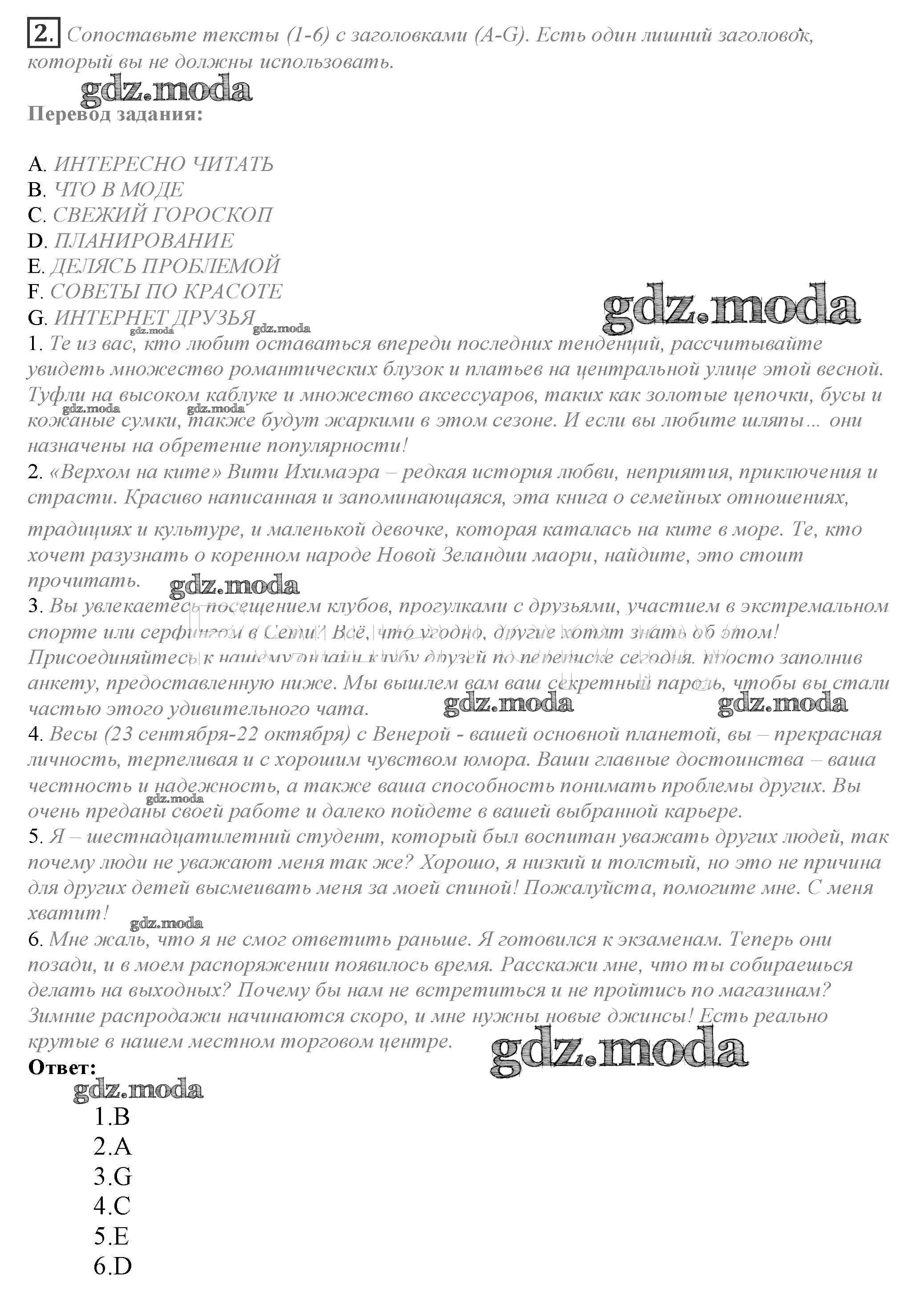 ОТВЕТ на задание № 2 Учебник по Английскому языку 10 класс Афанасьева Spotlight