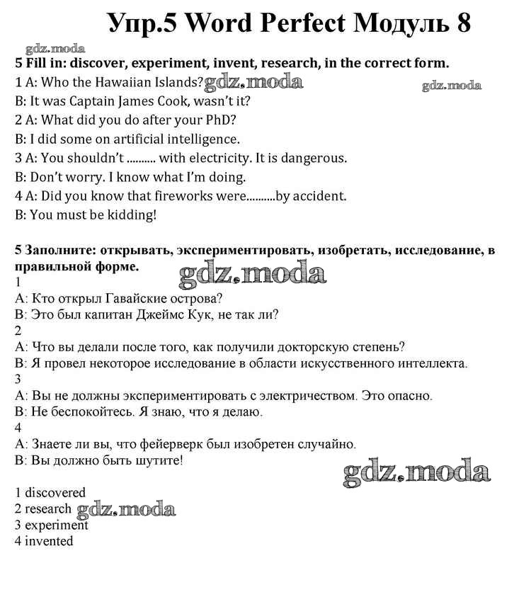ОТВЕТ на задание № 5 Учебник по Английскому языку 10 класс Афанасьева Spotlight