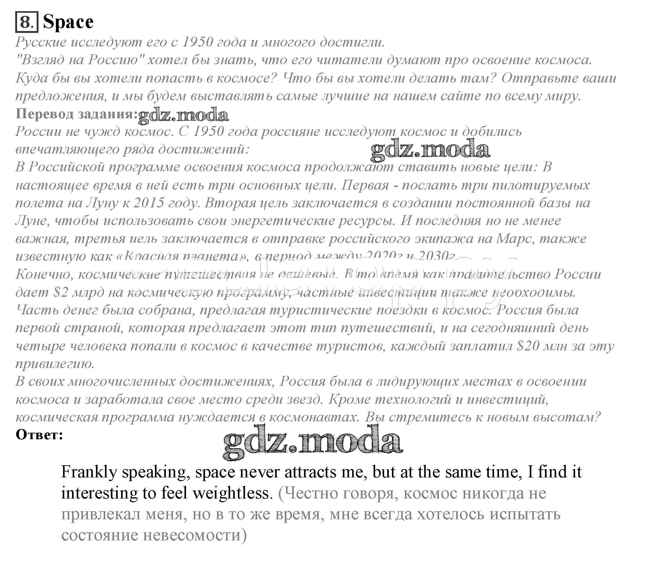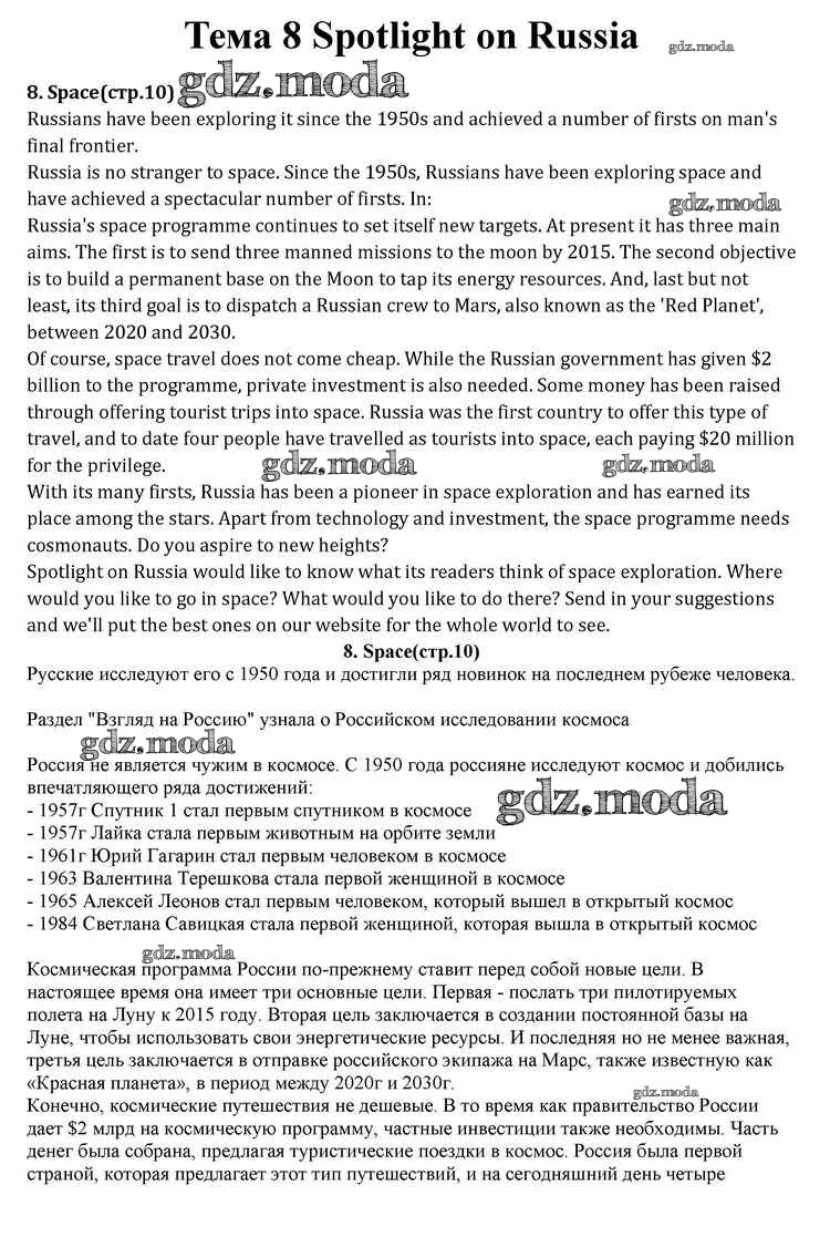 ОТВЕТ на задание № 8. Space Учебник по Английскому языку 10 класс Афанасьева Spotlight