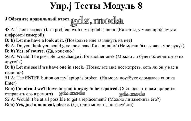 ОТВЕТ на задание № j Учебник по Английскому языку 10 класс Афанасьева Spotlight