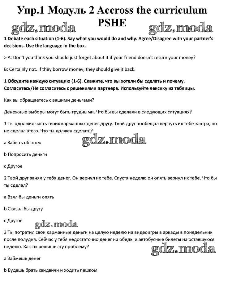 ОТВЕТ на задание № 1 Учебник по Английскому языку 10 класс Афанасьева Spotlight