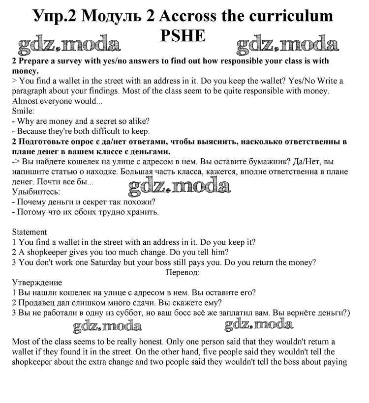 ОТВЕТ на задание № 2 Учебник по Английскому языку 10 класс Афанасьева Spotlight