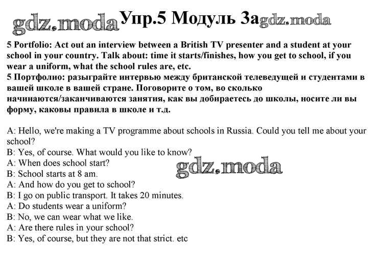 ОТВЕТ на задание № 5 Учебник по Английскому языку 10 класс Афанасьева Spotlight