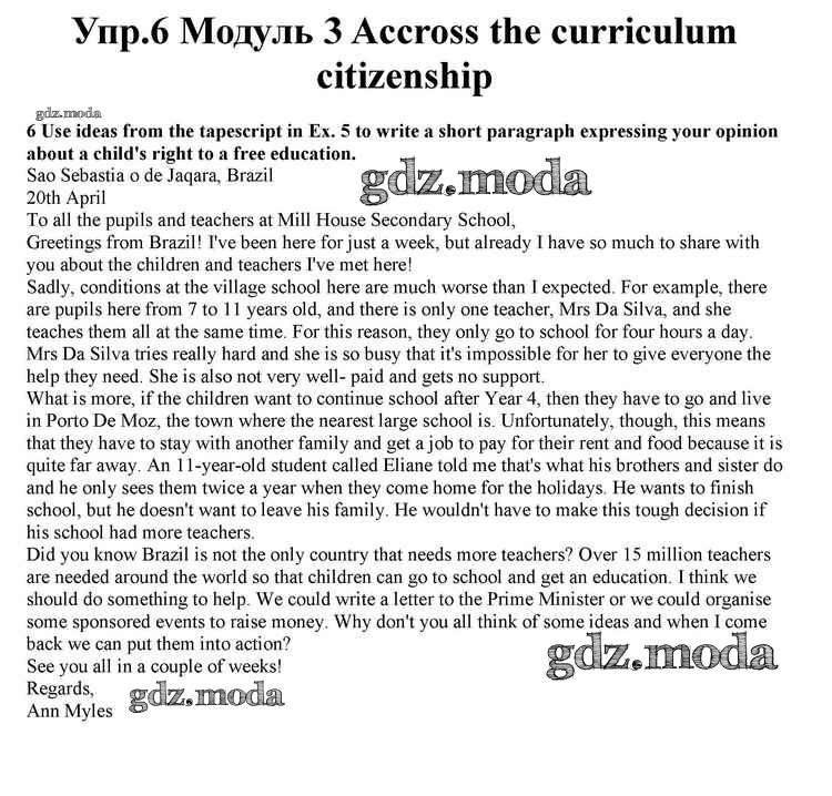 ОТВЕТ на задание № 6 Учебник по Английскому языку 10 класс Афанасьева Spotlight