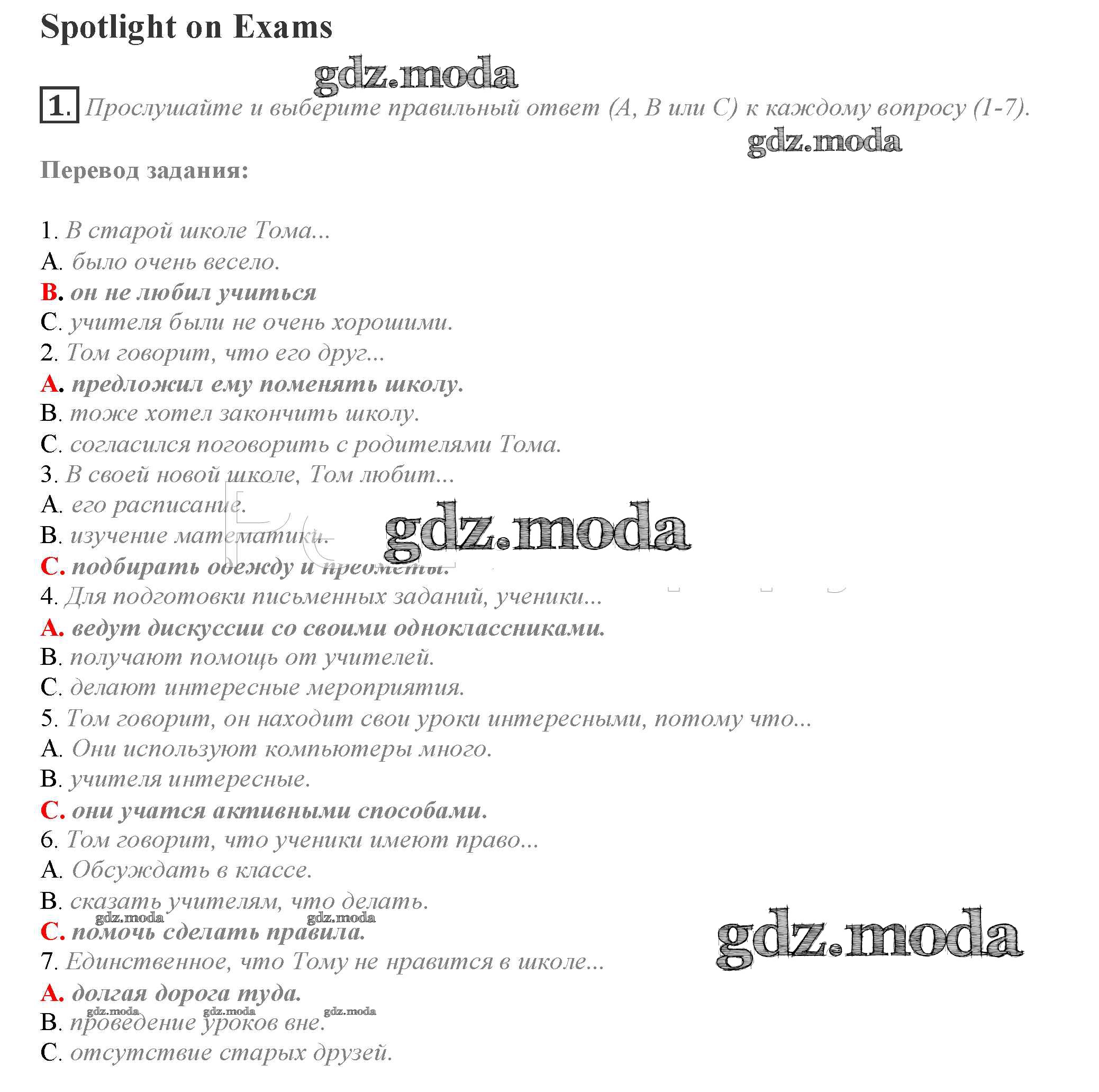ОТВЕТ на задание № 1 Учебник по Английскому языку 10 класс Афанасьева Spotlight