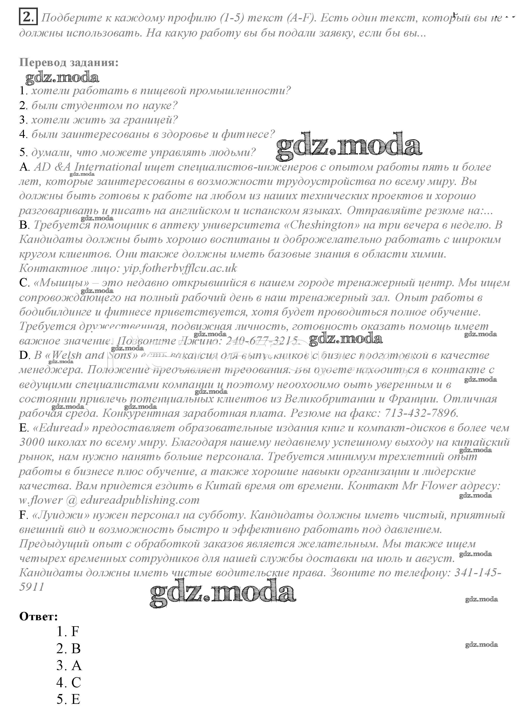 ОТВЕТ на задание № 2 Учебник по Английскому языку 10 класс Афанасьева Spotlight