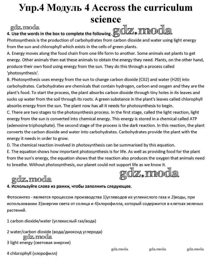 ОТВЕТ на задание № 4 Учебник по Английскому языку 10 класс Афанасьева Spotlight
