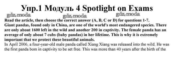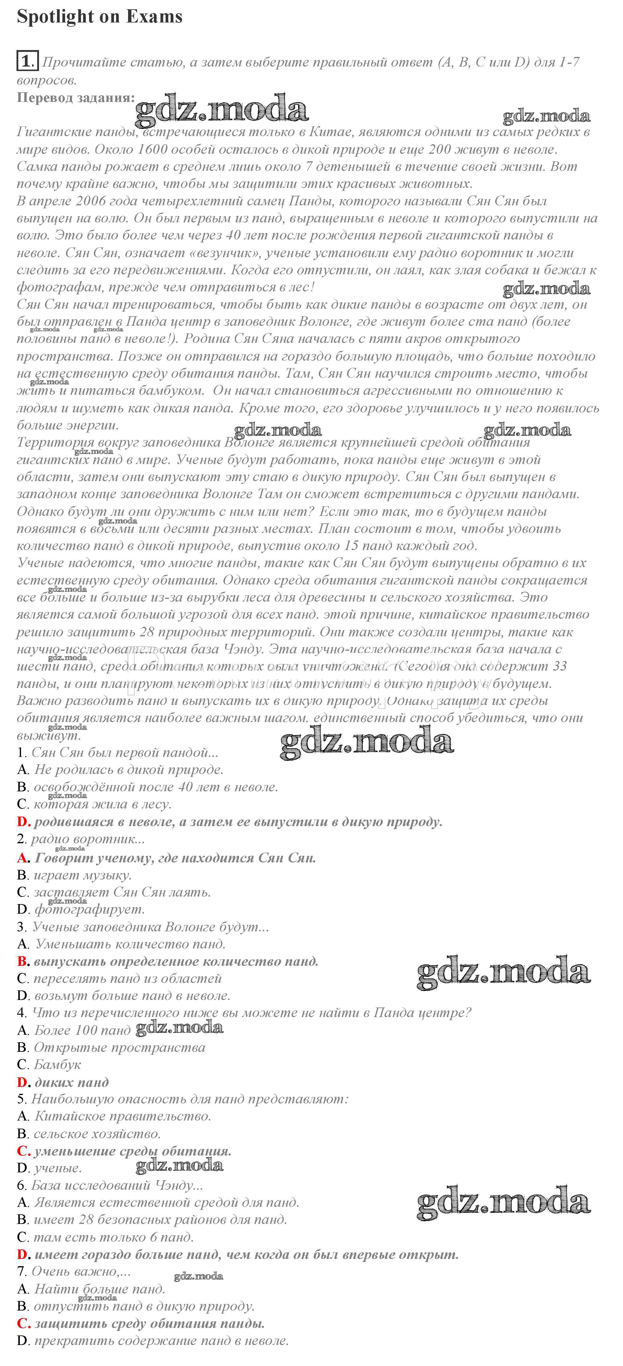 ОТВЕТ на задание № 1 Учебник по Английскому языку 10 класс Афанасьева Spotlight