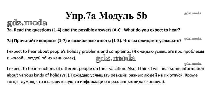 ОТВЕТ на задание № 7a Учебник по Английскому языку 10 класс Афанасьева Spotlight