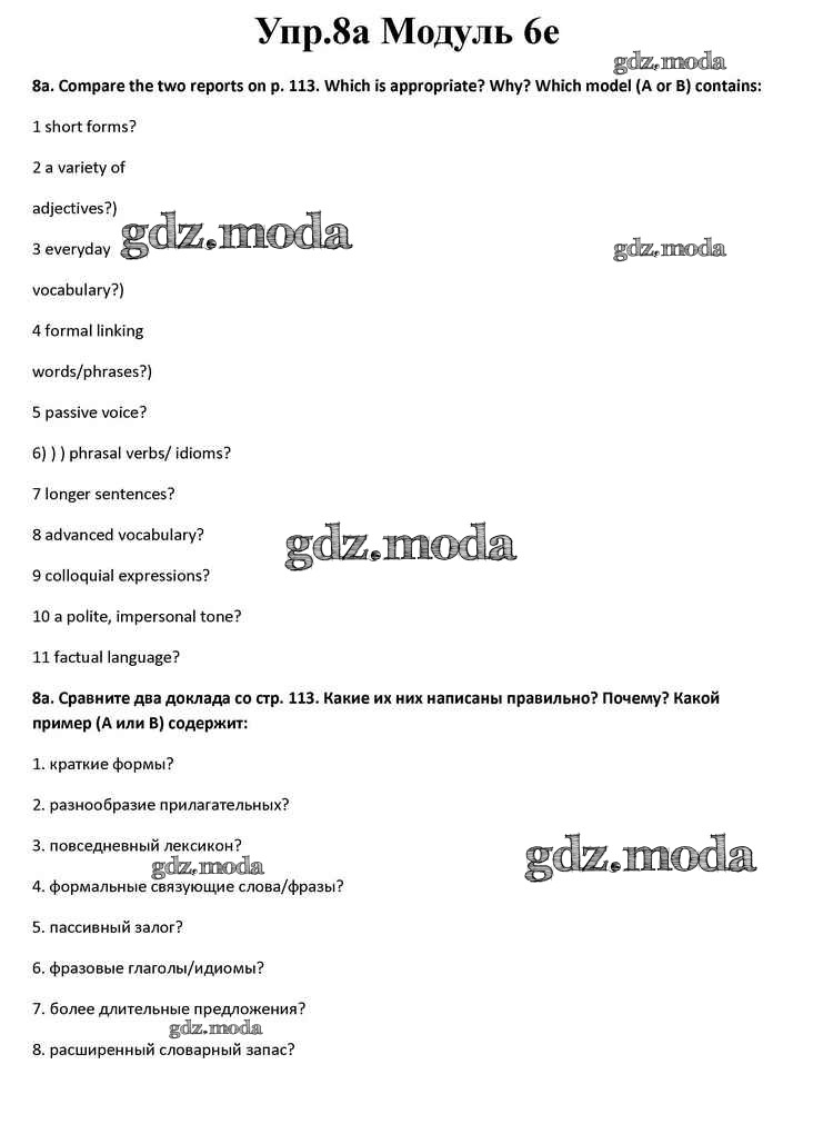 ОТВЕТ на задание № 8a Учебник по Английскому языку 10 класс Афанасьева Spotlight