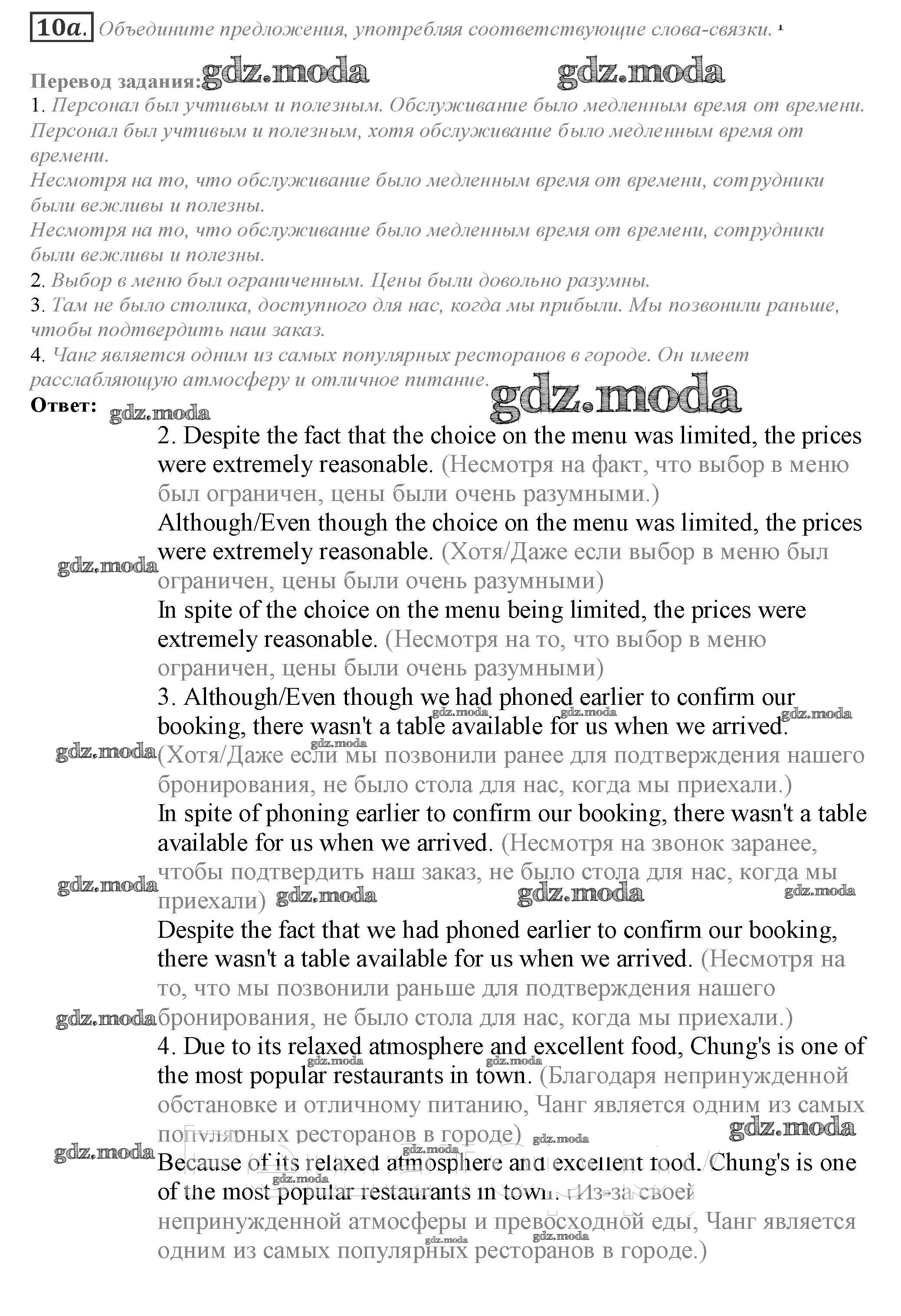 ОТВЕТ на задание № 10a Учебник по Английскому языку 10 класс Афанасьева Spotlight