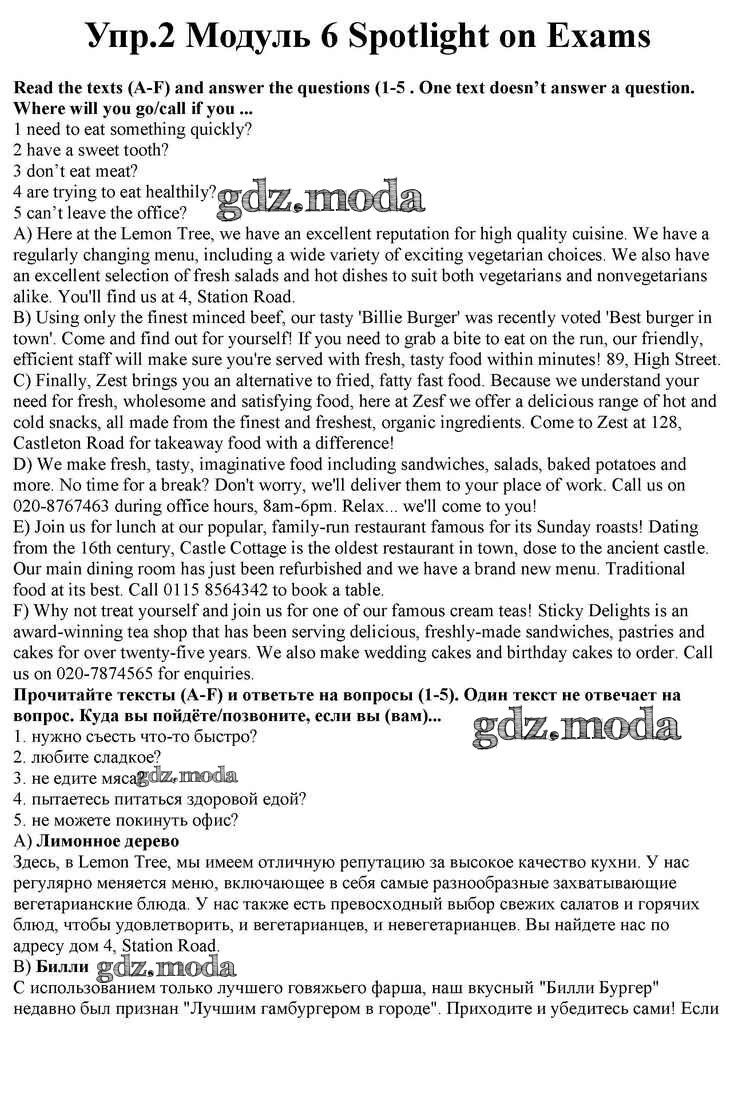 ОТВЕТ на задание № 2 Учебник по Английскому языку 10 класс Афанасьева Spotlight