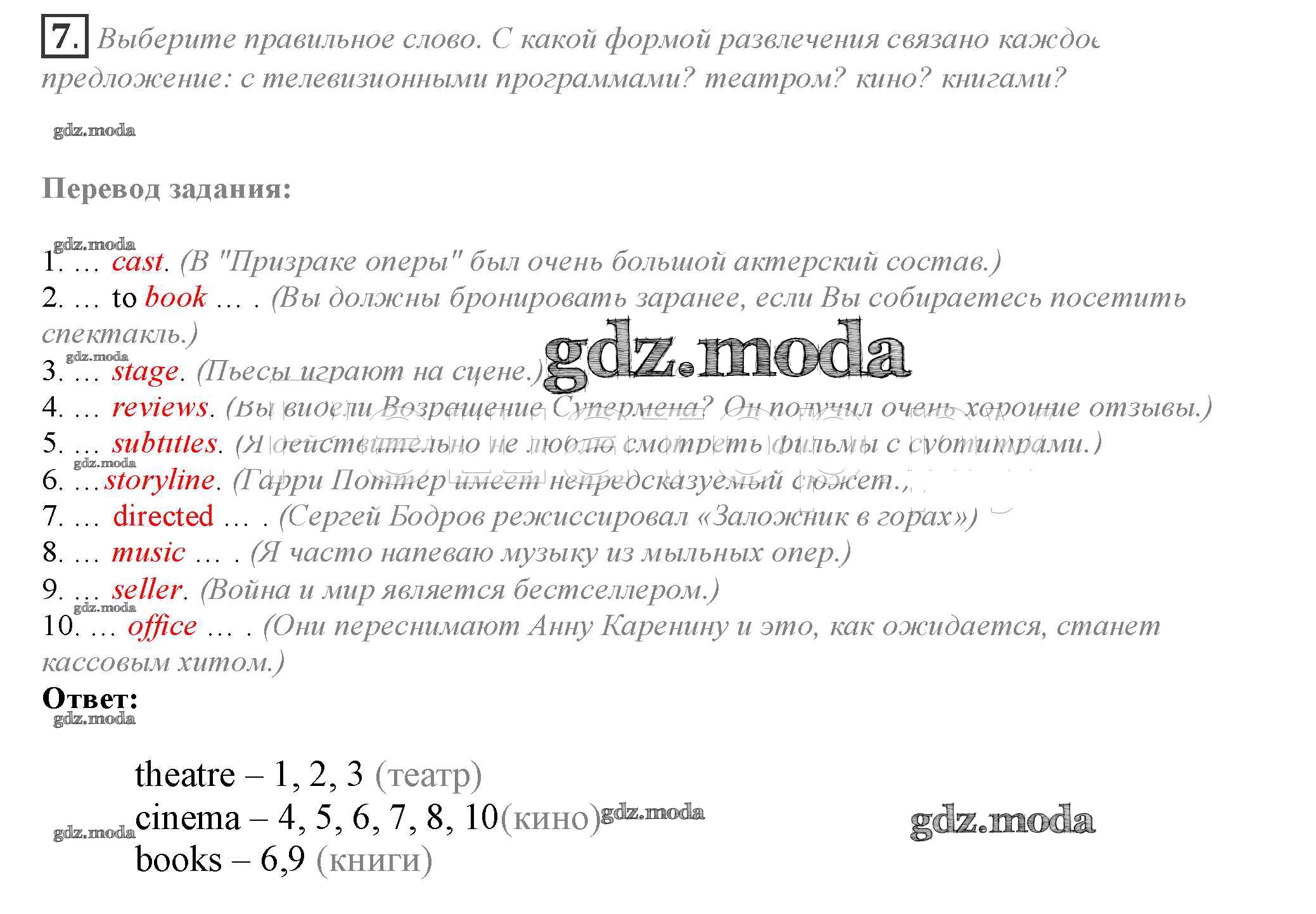 ОТВЕТ на задание № 7 Учебник по Английскому языку 10 класс Афанасьева Spotlight