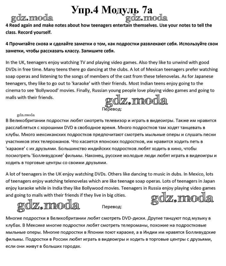 ОТВЕТ на задание № 4 Учебник по Английскому языку 10 класс Афанасьева Spotlight