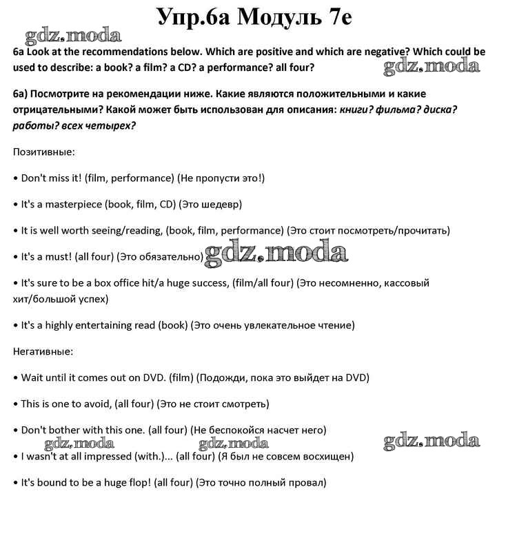 ОТВЕТ на задание № 6a Учебник по Английскому языку 10 класс Афанасьева Spotlight