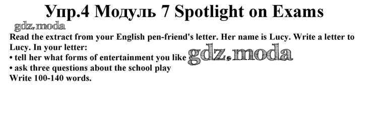 ОТВЕТ на задание № 4 Учебник по Английскому языку 10 класс Афанасьева Spotlight
