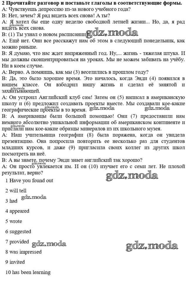 ОТВЕТ на задание № 2 Рабочая тетрадь по Английскому языку 10 класс Биболетова Enjoy English