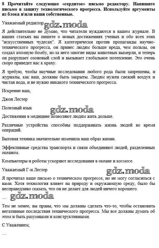 ОТВЕТ на задание № 8 Рабочая тетрадь по Английскому языку 10 класс Биболетова Enjoy English