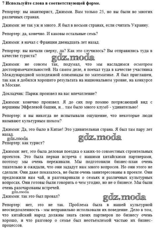 ОТВЕТ на задание № 7 Рабочая тетрадь по Английскому языку 10 класс Биболетова Enjoy English