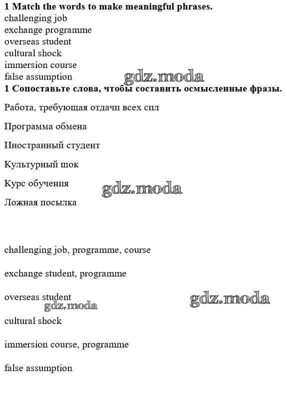 ОТВЕТ на задание № 1 Рабочая тетрадь по Английскому языку 10 класс Биболетова Enjoy English