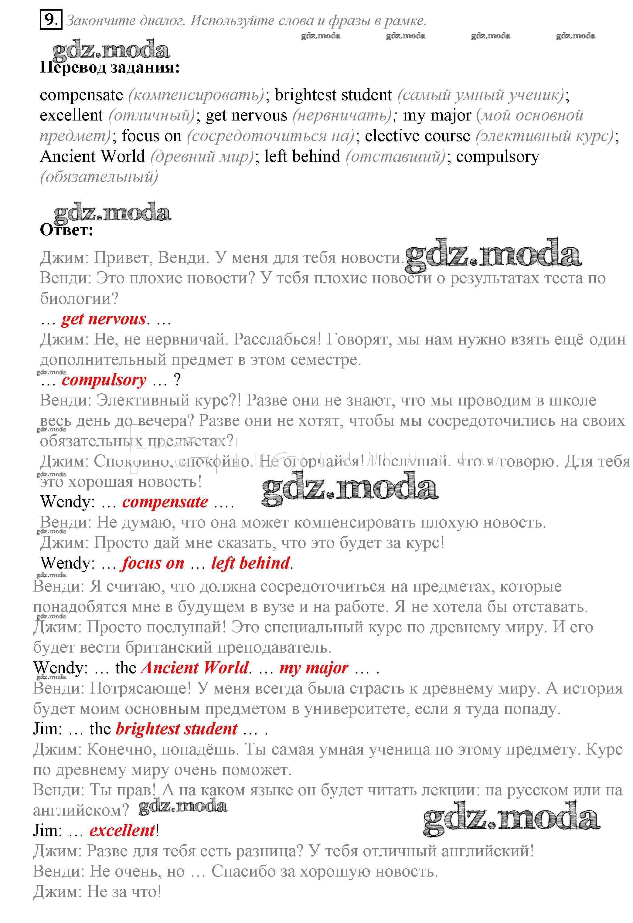 ГДЗ решение к заданию № 9 Английский язык 10 класс рабочая тетрадь Биболетова Аст/Астрель 2016 ФГОС бесплатно на гдз.мода!
