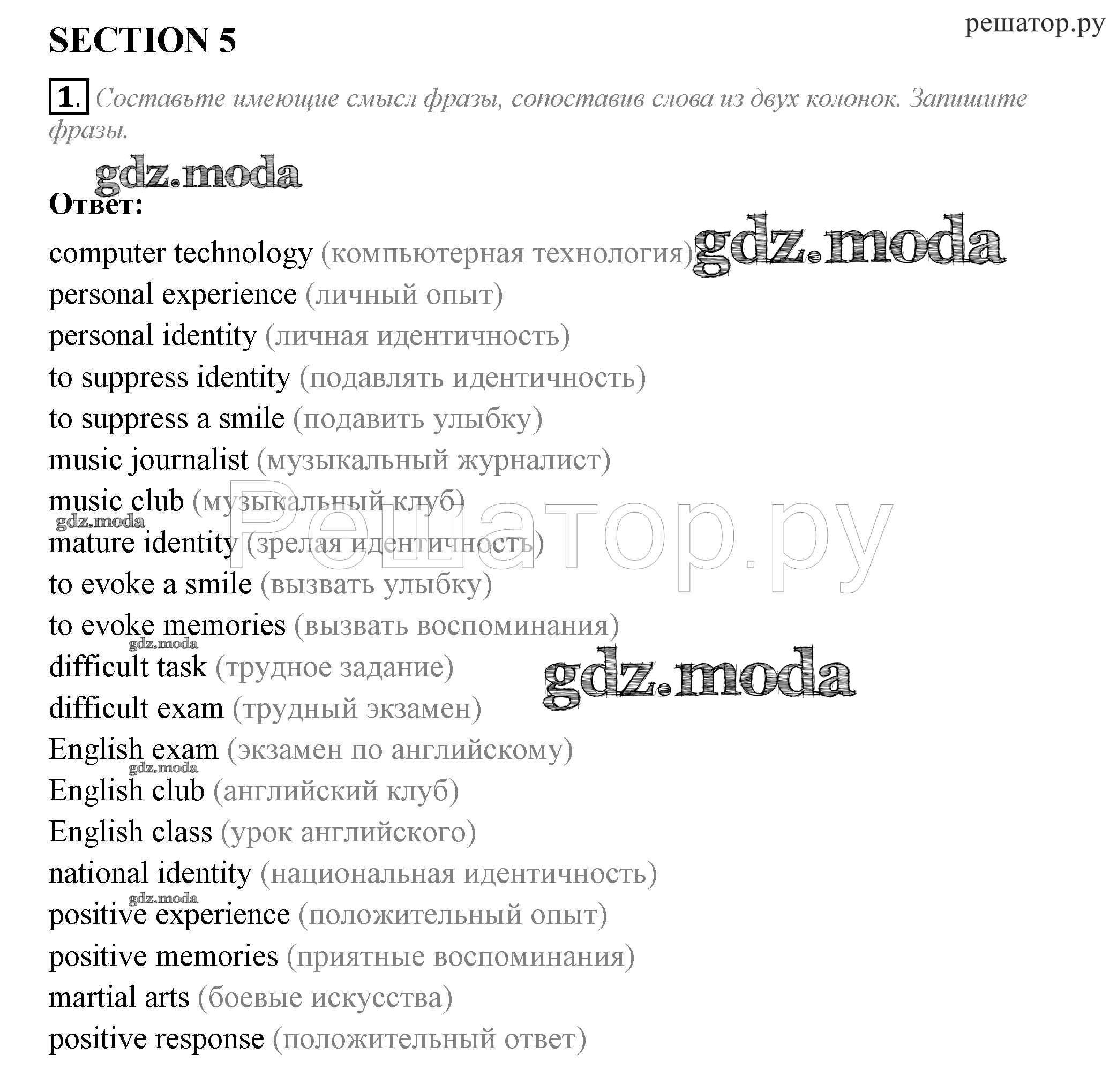 ГДЗ решение к заданию № 1 Английский язык 10 класс рабочая тетрадь Биболетова Аст/Астрель 2016 ФГОС бесплатно на гдз.мода!
