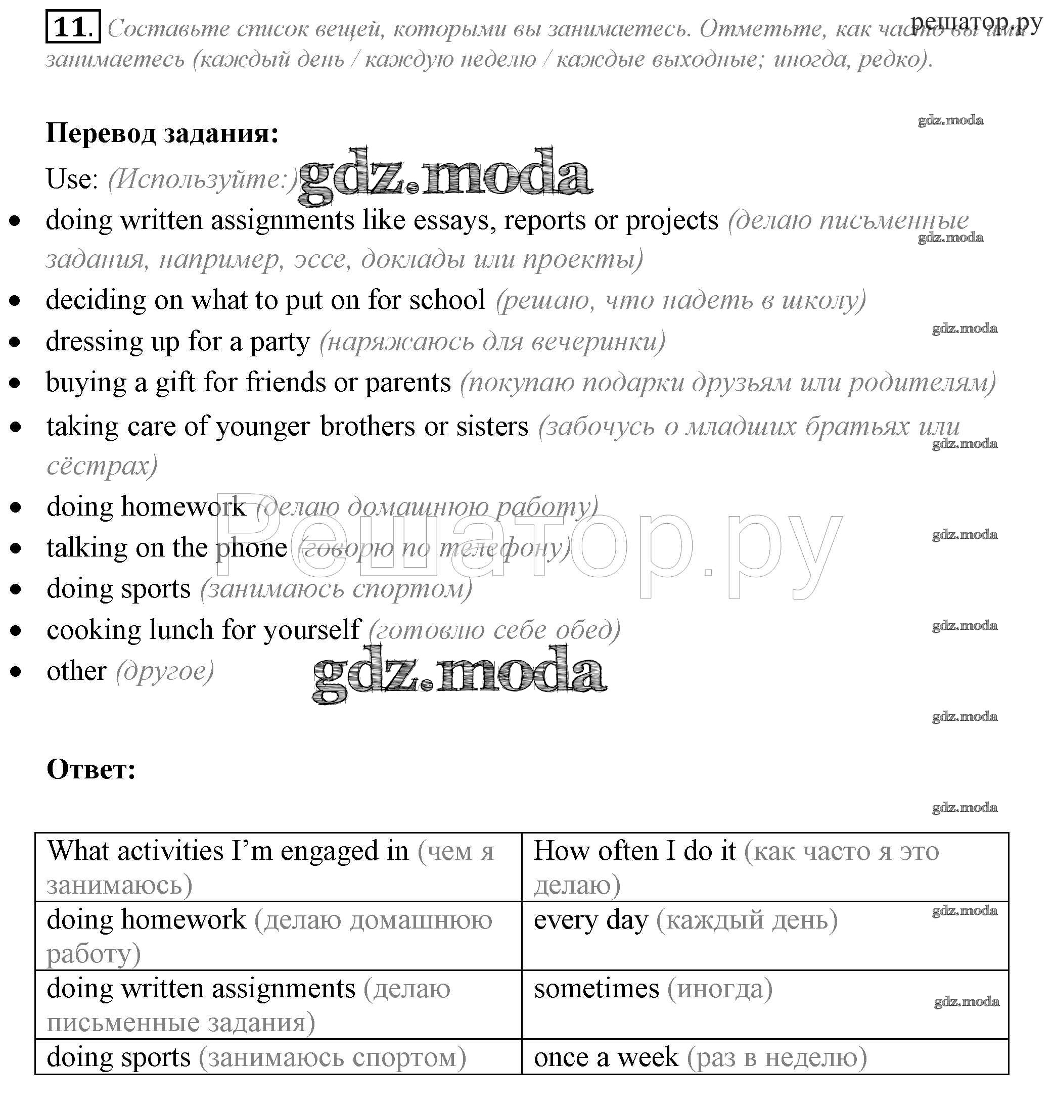 ГДЗ решение к заданию № 11 Английский язык 10 класс рабочая тетрадь Биболетова Аст/Астрель 2016 ФГОС бесплатно на гдз.мода!