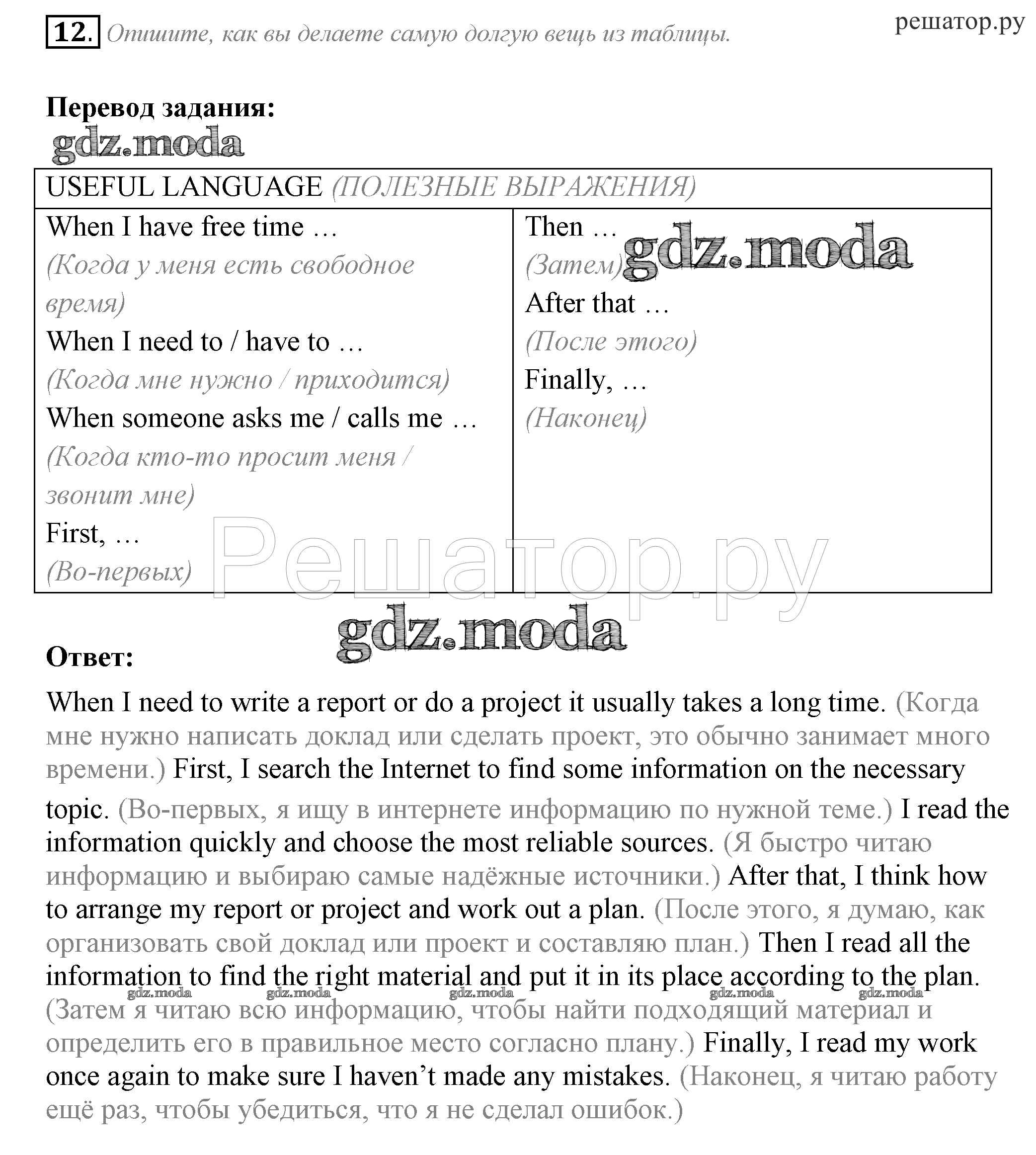 ГДЗ решение к заданию № 12 Английский язык 10 класс рабочая тетрадь Биболетова Аст/Астрель 2016 ФГОС бесплатно на гдз.мода!