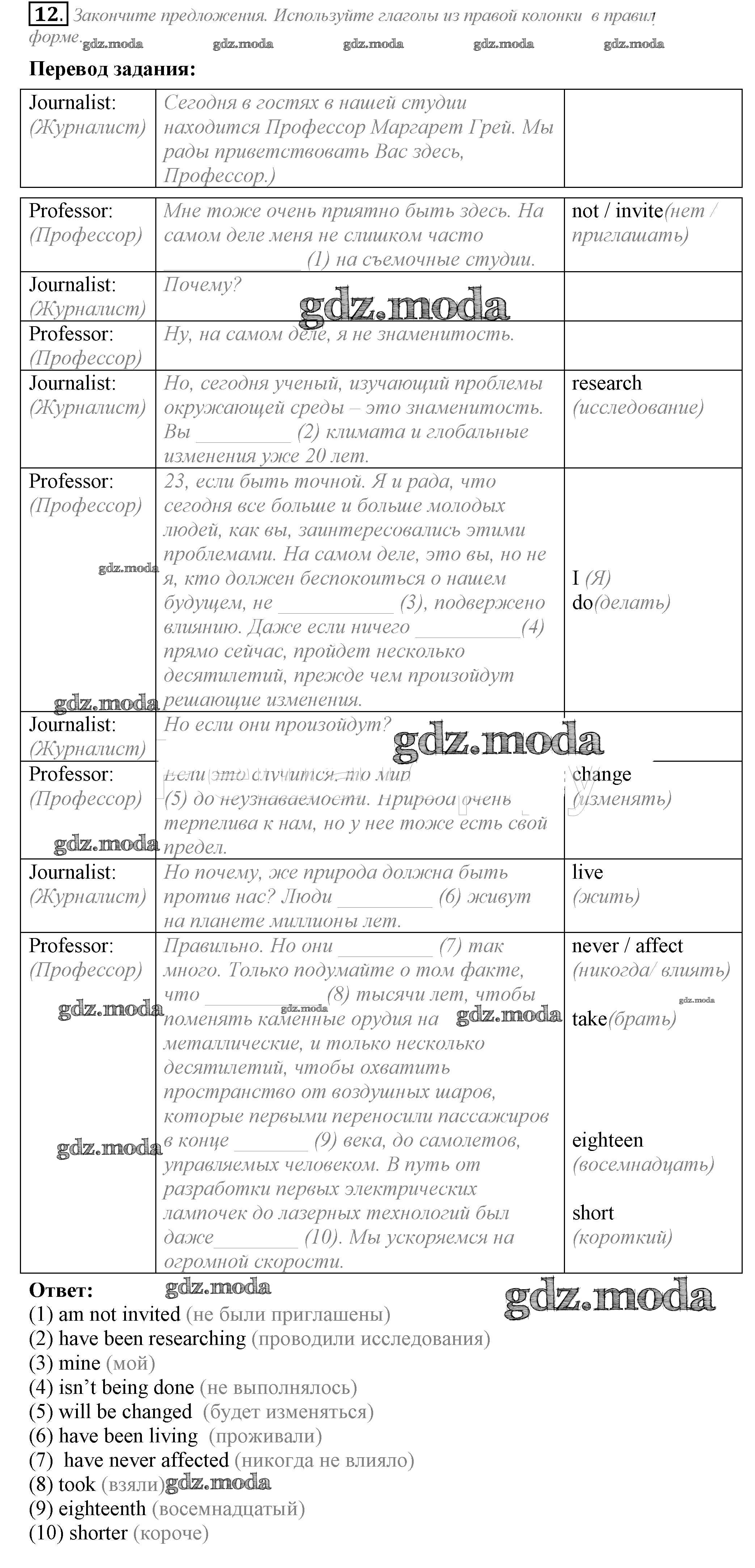 ГДЗ решение к заданию № 12 Английский язык 10 класс рабочая тетрадь Биболетова Аст/Астрель 2016 ФГОС бесплатно на гдз.мода!