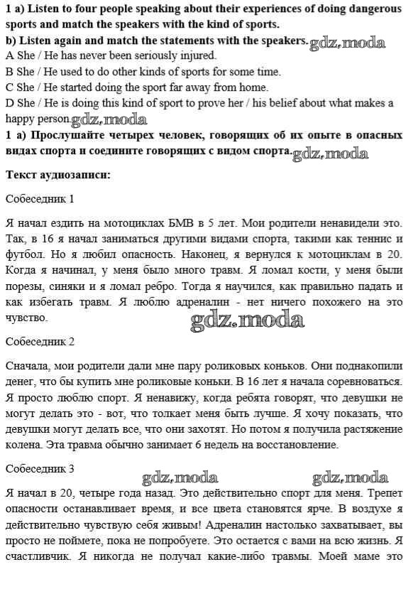 ГДЗ решение к заданию № 1 Английский язык 10 класс Enjoy English Биболетова М.З. Аст/Астрель 2016 ФГОС бесплатно на гдз.мода!