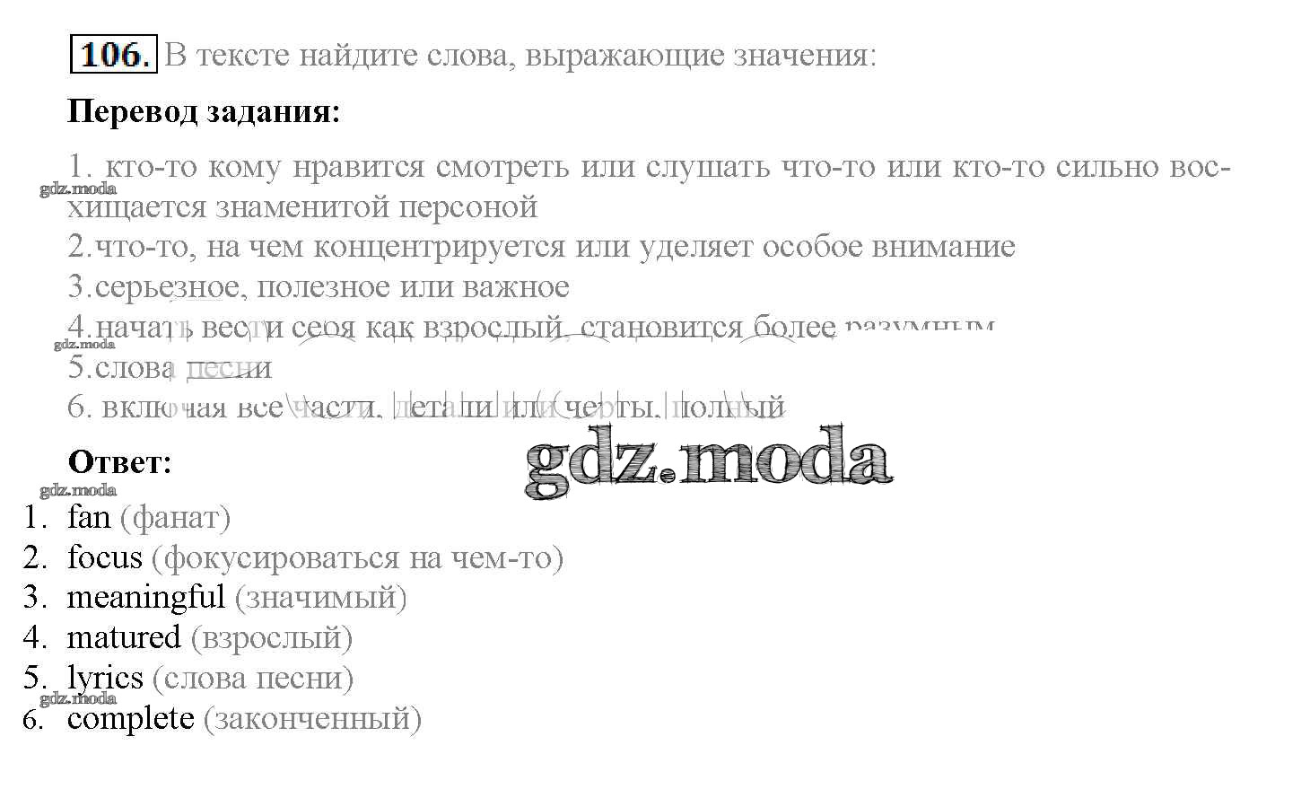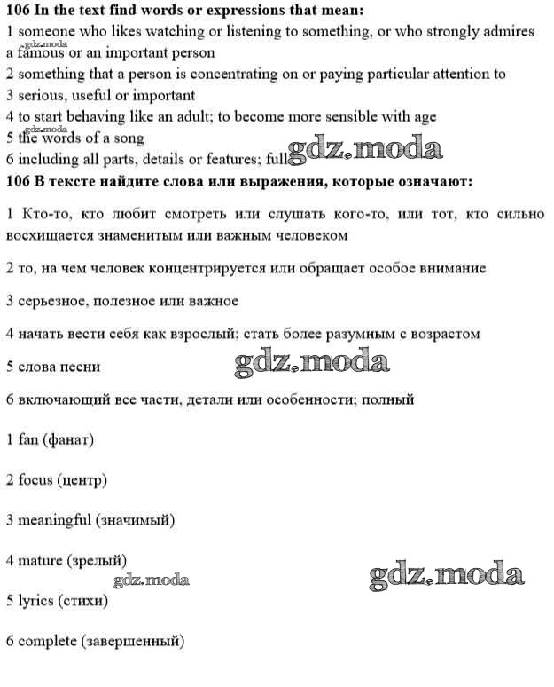 ГДЗ решение к заданию № 106 Английский язык 10 класс Enjoy English Биболетова М.З. Аст/Астрель 2016 ФГОС бесплатно на гдз.мода!