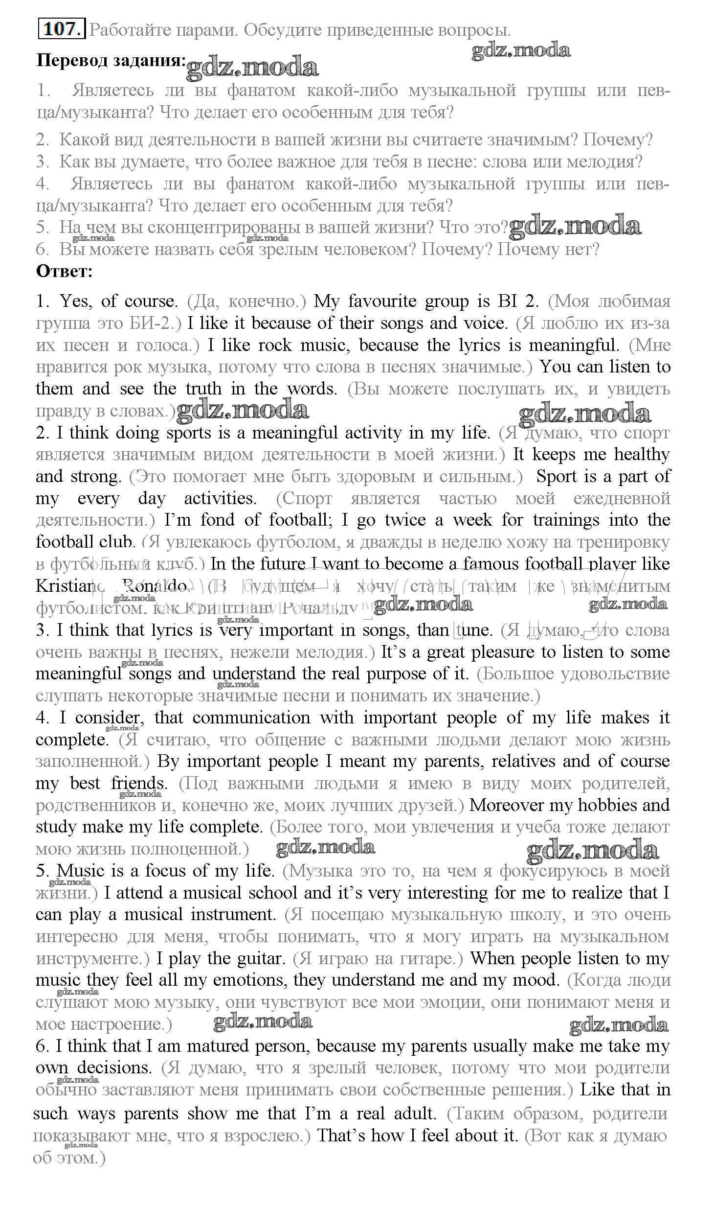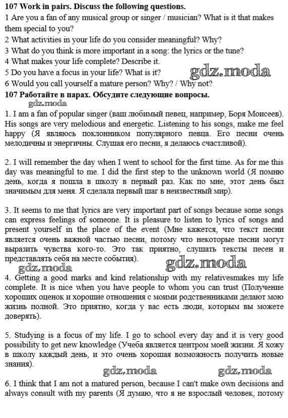 ГДЗ решение к заданию № 107 Английский язык 10 класс Enjoy English Биболетова М.З. Аст/Астрель 2016 ФГОС бесплатно на гдз.мода!