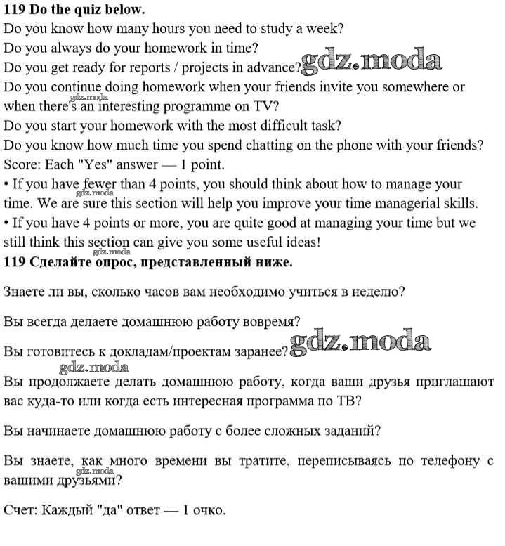 ГДЗ решение к заданию № 119 Английский язык 10 класс Enjoy English Биболетова М.З. Аст/Астрель 2016 ФГОС бесплатно на гдз.мода!