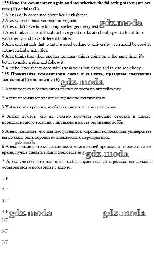 ОТВЕТ на задание № 125 Учебник по Английскому языку 10 класс Биболетова Enjoy English