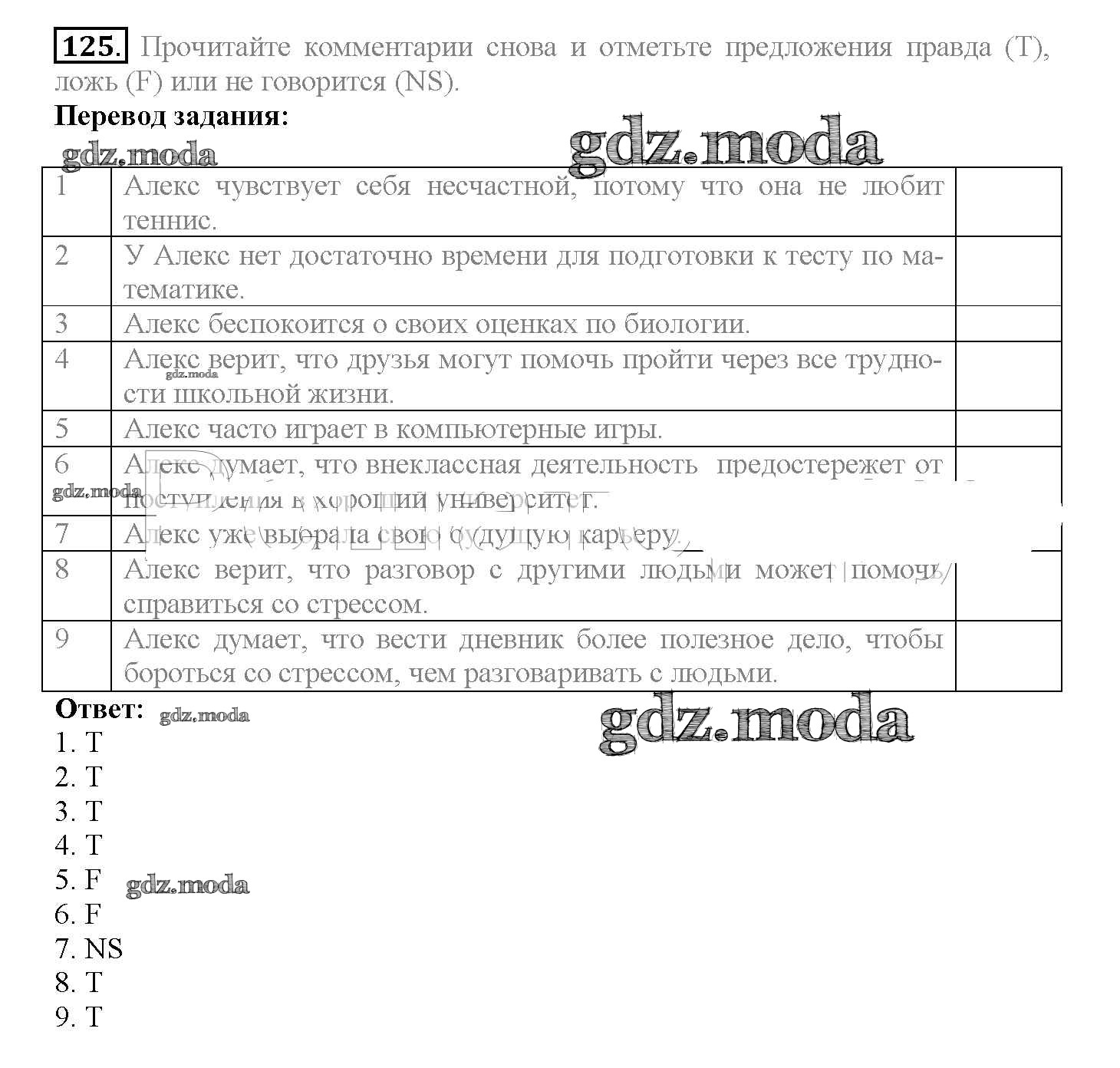 ГДЗ решение к заданию № 125 Английский язык 10 класс Enjoy English Биболетова М.З. Аст/Астрель 2016 ФГОС бесплатно на гдз.мода!