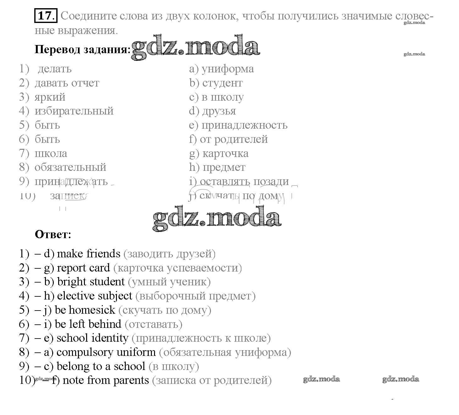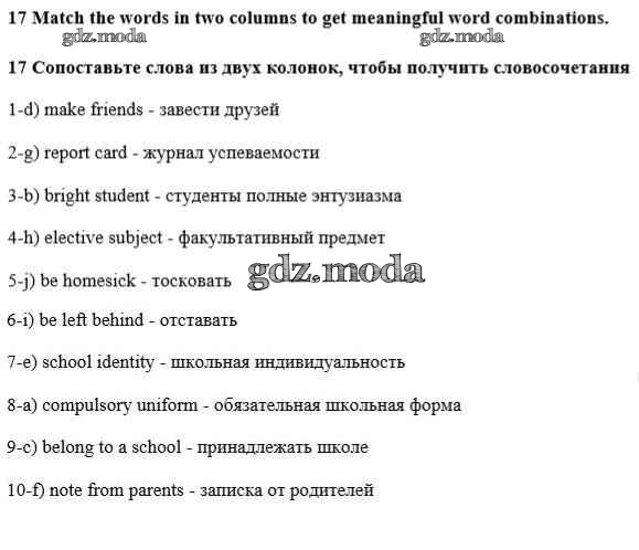 ГДЗ решение к заданию № 17 Английский язык 10 класс Enjoy English Биболетова М.З. Аст/Астрель 2016 ФГОС бесплатно на гдз.мода!