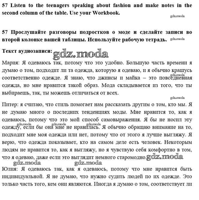 ГДЗ решение к заданию № 57 Английский язык 10 класс Enjoy English Биболетова М.З. Аст/Астрель 2016 ФГОС бесплатно на гдз.мода!